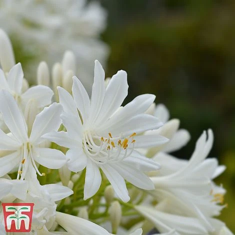 Exotic, hardy plants with globes made up of many small, trumpet-like blooms in pure white, coming up from robust, grassy foliage. Agapanthus africanus ‘Albus’ makes an outstanding border perennial for a sunny position in the garden.