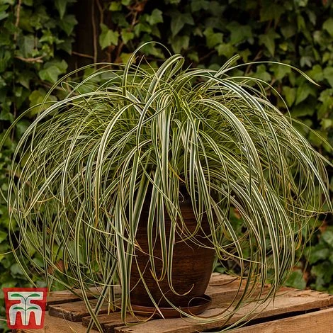 Few plants are as versatile and reliable in the garden as this Japanese Sedge! Its arching foliage creates a fountain of green and white variegated leaves that remain evergreen, even through the coldest winters. Carex ‘Feather Falls’ is ideal for softening borders and adding movement and texture to planting schemes. It makes a fabulous specimen for the patio too, especially as part of a mixed winter container. Once stablished, this clump forming perennial needs very little maintenance, and thrives in both sun and shade. Height: 40cm (16″). Spread: 60cm (24″).