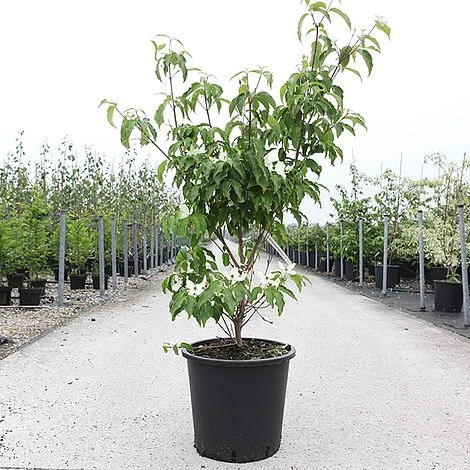 Cornus kousa ‘Roberts Select’ is a compact selection, making this small multi-stemmed tree or shrub even more suited to smaller spaces. The large, showy flowers of ‘Robert Select’ have twisted sepals, adding to their elegance. In May and June, tiers of horizontal branches are decked with masses of luminous white bracts, against a dense canopy of glossy green leaves. Strawberry-like fruits provide additional interest before a flamboyant finale of purple-crimson autumn foliage colour. One of the best trees for small gardens, providing plenty of interest throughout the seasons. Height and spread: 2.5m (8ft).