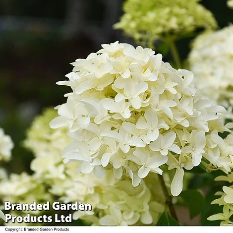 A sumptuous variety, Hydrangea paniculata ‘Skyfall’ bears very large conical heads composed of flowers with distinctively narrow, starry petals giving the whole panicle the appearance of an enormous hyacinth. Greenish buds open into creamy white panicles maturing to white and then taking on pink tints as they age. Despite the heavy weight of the supersized panicles, strongly erect stems hold them pointing skywards! A wonderful shrub for adding glamour to borders, especially ones in part shade, and a stunning specimen for a large patio pot. Height: 120cm (48in). Spread: 80cm (32in).
