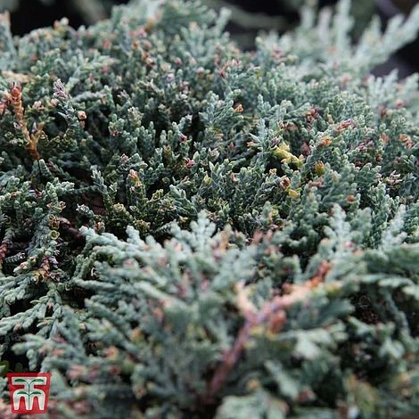 Juniperus horizontalis ‘Icee Blue’ is one of the best prostrate conifers introduced in recent years. This well branched Creeping Juniper quickly forms a carpet of silvery-blue evergreen foliage that turns to plummy-bronze shades during the coldest winters. Reaching just 15cm (6″) tall but with a spread of 2m (6′,5″), this exceptional shrub is perfect for creating evergreen groundcover. Juniperus horizontalis ‘Icee Blue’ is easy to grow, needs virtually no maintenance, and tolerates a wide range of conditions – no wonder the RHS have given it an Award of Garden Merit! Height: 15cm (6″). Spread: 2m (6′,5″).