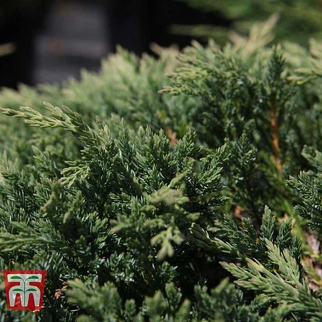 Juniperus horizontalis ‘Prince of Wales’ is a prostrate Creeping Juniper with a low, flat growth habit. Over time, the spreading branches will form a dense mat of blue-green foliage that makes excellent evergreen groundcover. Throughout winter the tips of the branches turn a plummy-burgundy colour which creates a pleasing contrast with other conifers. Like all Junipers, it is undemanding and thrives in a wide range of growing conditions. Height: 20cm (8″). Spread: 2m (6′,5″).
