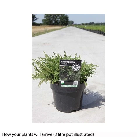 A low growing, spreading conifer, Siberian Cypress are ideal for groundcover and weed suppressing. Microbiota decussata ‘Fuzzball’ has soft, attractive green foliage in spring and summer, which turns to a bronze colour during autumn and winter. A low maintenance plant, ideal for areas such as banks or slopes where access may be difficult but still need to look good all year around. Height: 50cm (20″). Spread: 150cm (59″).