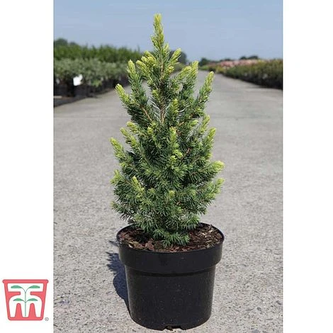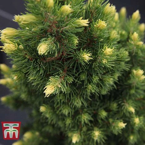 The delightful contrast of bright yellow foliage on the new growth each spring, set against the rich darker needles of the established branches make Picea glauca ‘Rainbows End’ look like it’s been dusted with gold! This dwarf, evergreen Alberta spruce is a hardy, slow growing conifer that is useful as the focal point of a rockery or alpine garden, alternatively, plant it in a large container as the centre piece of a colourful bedding display during either winter or summer. Height: 300cm (118″). Spread: 120cm (47″).