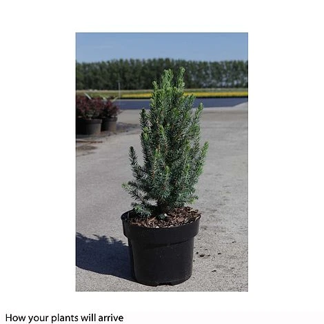 With foliage colouring ranging from a steely blue to a dark grey-green, Picea glauca Sanders Blue’ is certainly a colourful and highly interesting dwarf spruce. This evergreen tree can happily spend its first few years as a Christmas tree, in a pot, providing it can be kept reliably watered! Once slightly more mature it will grow at only 4 to 6 inches per year (12 to 15cm) and so will be ideal for a smaller garden or even a shrub border.Height: 400cm (157″). Spread: 300cm (118″).
