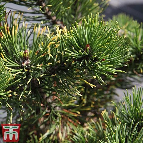 Pinus mugo ‘Carsten’s Wintergold’ is extremely slow growing, forming a flattened mound of open branches that remain neat and compact. Green needles in spring and summer turn a beautiful golden-yellow as winter approaches, bringing a glowing splash of colour to the garden during the bleakest months. Tiny, brown cones form in autumn, adding yet more seasonal interest. This superb specimen plant is a must have for the rockery to complement green needled conifers. Its dwarf habit also majkes it an excellent container plant for the patio or balcony. Height and spread: 60cm (2′).