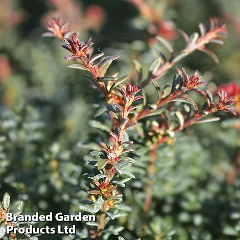 Podocarpus alpinus ‘Jalako Red’ could be mistaken for Yew with its dark, evergreen foliage, but this compact, mound forming shrub is distinctly different. The new foliage is red in spring giving some lovely contrast. Spring flowers are followed by small red fruits where male and female plants are grown together. This speedy conifer is ideal for creating ground cover in borders where it will deliver texture and colour to your planting scheme. Height: 50cm (20”). Spread: 100cm (39”).