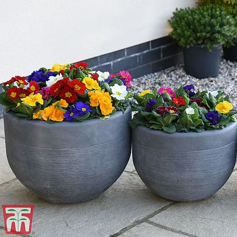 Create a party in your patio pots with this long lasting mix of some of our best Primrose varieties! Each has been chosen for its superb garden performance and slightly differing flowering period. The result is a blend of plants that provide colour from winter right through to the middle of spring! Primrose ‘100 Days of Flower’ are the perfect choice for low maintenance pots, creating annual bedding displays, or edging paths and borders. Height and spread: 20cm (8″).