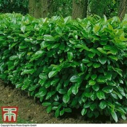 Better known as the Cherry Laurel, this dense evergreen shrub makes a popular hedging plant. The large glossy, rounded leaves form a lovely backdrop for the elegant creamy white flower spikes in Spring. The fragrant blooms are a magnet for pollinating insects. As the flowers fade, glossy cherry-red berries take their place, providing food for hungry birds. Prunus laurocerasus ‘Rotundifolia’ is a useful shrub growing equally well in full sun or in the shade of mature trees. This handsome RHS AGM variety makes a superb low maintenance specimen plant for borders, woodland areas and wildlife gardens. Height: 5m (16′). Spread: 4m (13′).