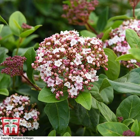 This hardy evergreen shrub is indispensable in the garden for its scented flowers and winter berries. Viburnum tinus ‘Lisarose’ is an attractive cultivar, bearing clusters of fragrant, creamy white flowers that open from deep red buds. The nectar rich blooms are followed by glossy black fruits. Flowering from December to April, this useful shrub makes a valuable winter feature at a time when colour is sparse in the garden. Laurustinus is particularly versatile – grow it in borders or woodland edges, or create a dense evergreen hedge that will attract pollinating insects. The blooms make good cut flowers too. Low maintenance and easy to grow; just perfect for bringing year round interest to borders or containers. Height and spread: 3m (10′).