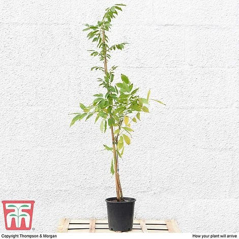 Wisteria sinensis is a little less vigorous than other wisteria species, reaching a mature height of 9m (28′). The prolific flowering habit makes Wisteria the ideal specimen plant for training onto sunny walls. Height: 9m (28′). Spread: 5m (16′). Supplied as a grafted plant.